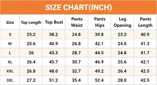 Size Chart(inches):